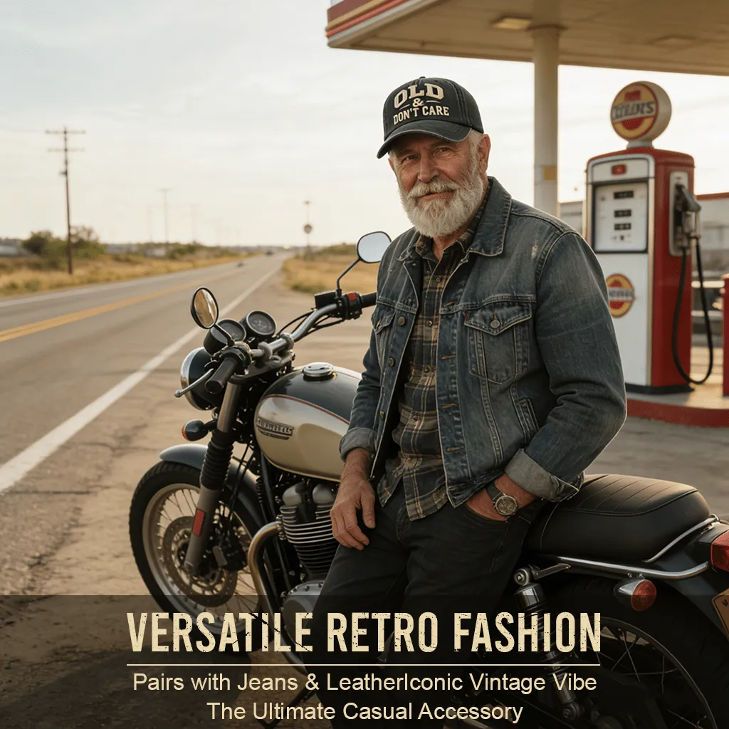 Wear your attitude like a badge. Featuring bold embroidered “OLD & DON’T CARE” front and center, this cap delivers that perfectly blunt, no-nonsense vibe.